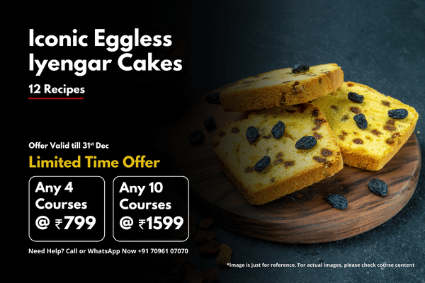 Discover the timeless charm of Iyengar Bakery in this workshop. You will learn to bake 12 iconic, eggless Iyengar-style cakes—moist, rich, aromatic, and full of nostalgic bakery flavors. Perfect for home bakers who want consistent results and aspiring entrepreneurs planning to start their own bakery business.