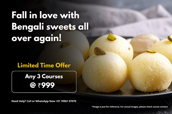 Learn to make 20+ authentic & fusion Bengali sweets right at home — soft, spongy, creamy, perfectly shaped and beautifully finished.