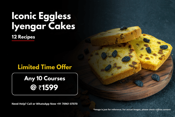 Discover the timeless charm of Iyengar Bakery in this workshop. You will learn to bake 12 iconic, eggless Iyengar-style cakes—moist, rich, aromatic, and full of nostalgic bakery flavors. Perfect for home bakers who want consistent results and aspiring entrepreneurs planning to start their own bakery business.